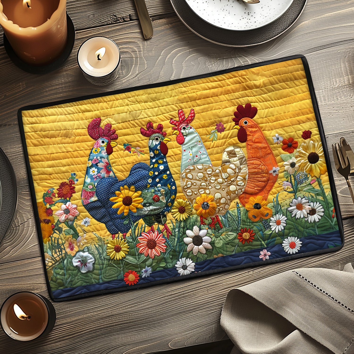 Country Farm Rooster Chicken Quilted Placemat NCU0TL011