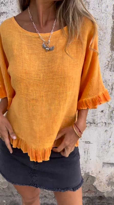 Fungus Hem Design Cotton and Linen Top