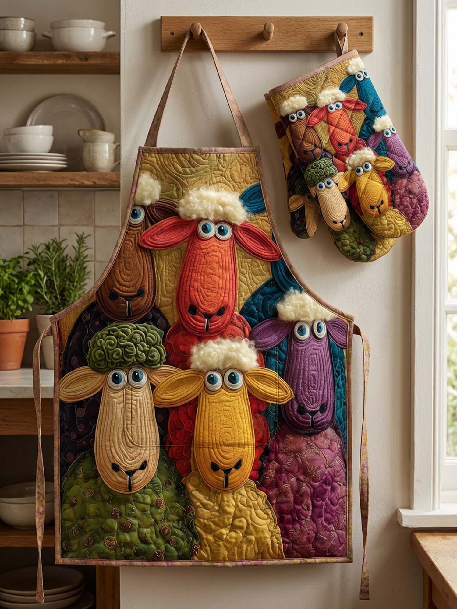 Cute Sheep Quilted Apron Set (2-Piece) – Padded Apron + Heat-Resistant Oven Mitts