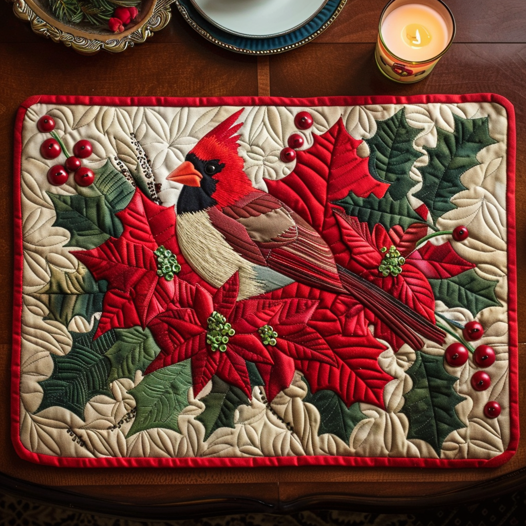 Poinsettia Cardinal Quilted Place Mat NCU0TH071