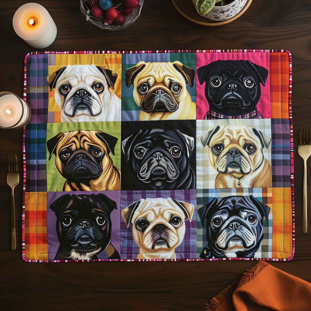 Colorful Baby Pugs Quilted Place Mat NCU0TH161