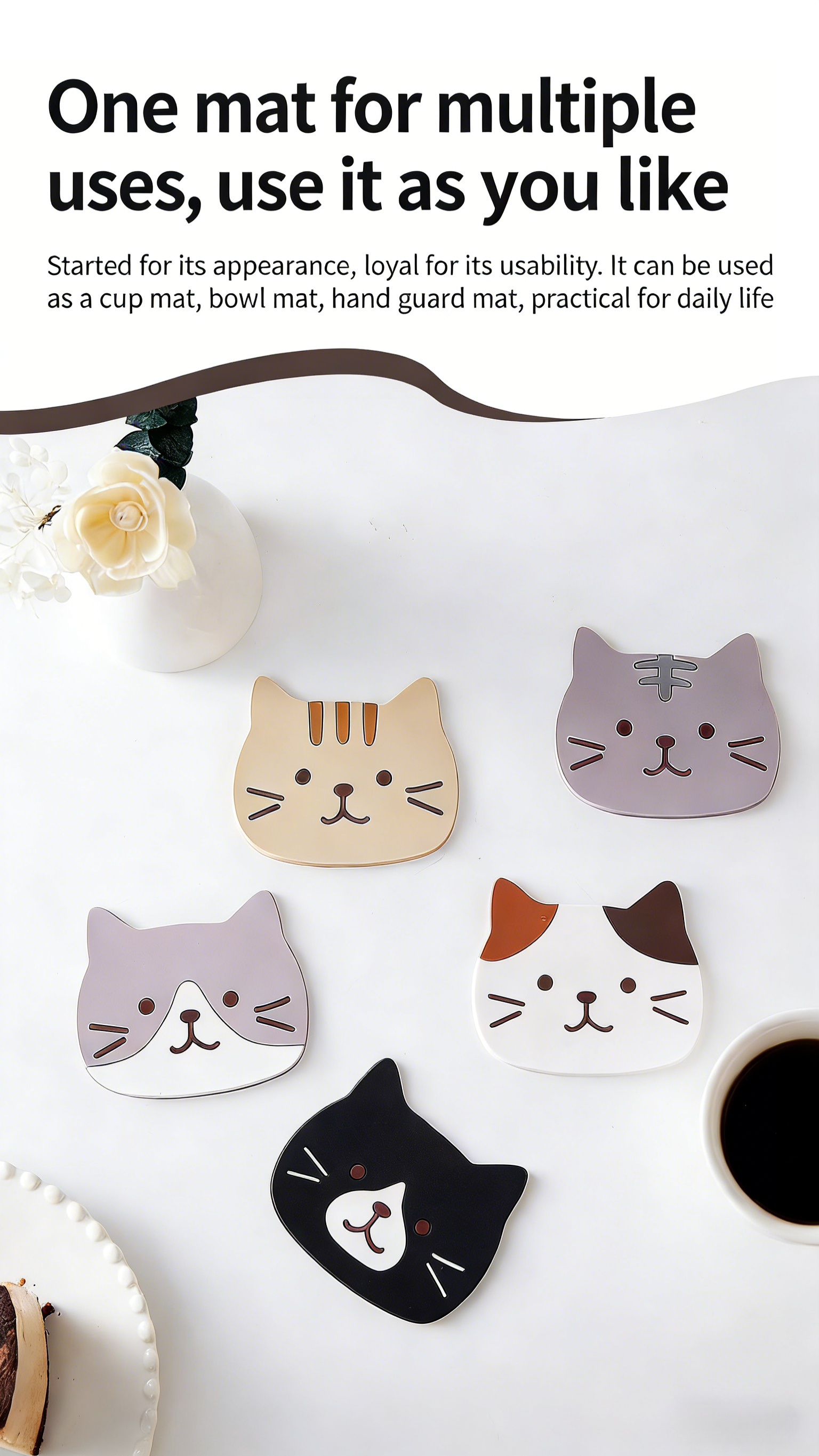 Cute Cat-Shaped Silicone Coasters: Heat-Resistant & Non-Slip Drink Mats for Your Home