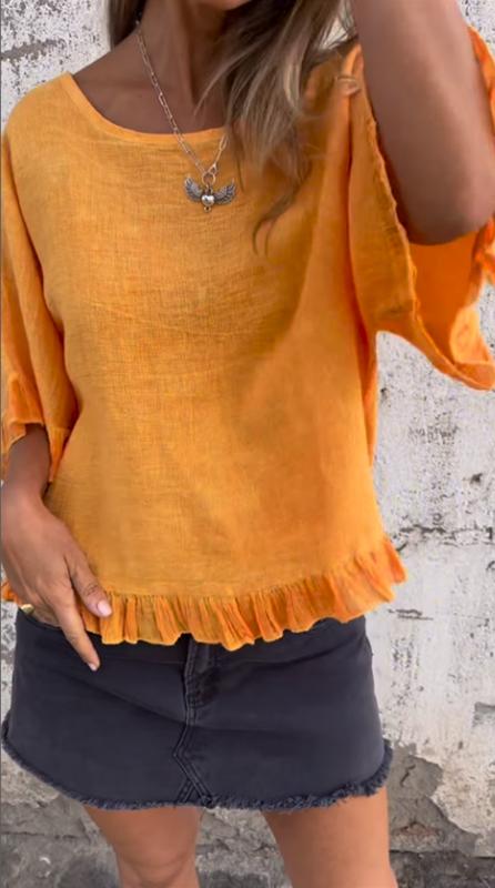 Fungus Hem Design Cotton and Linen Top