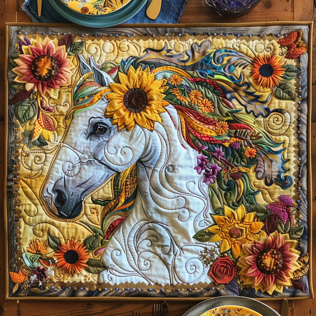 Vibrant White Horse Quilted Place Mat NCU0PD268