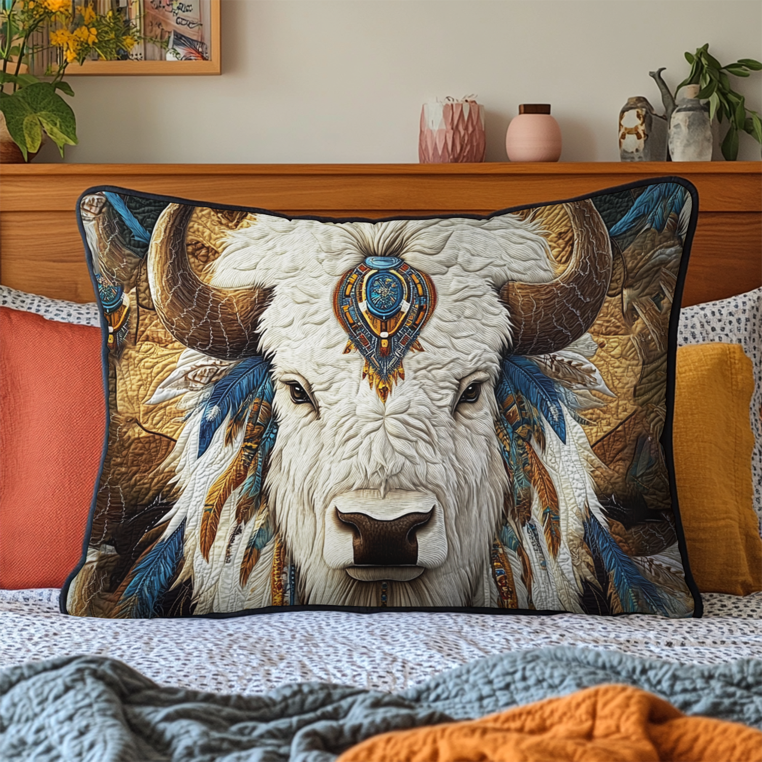 Tribal Herd Quilted Bedding Pillow Case NCU0VH1556