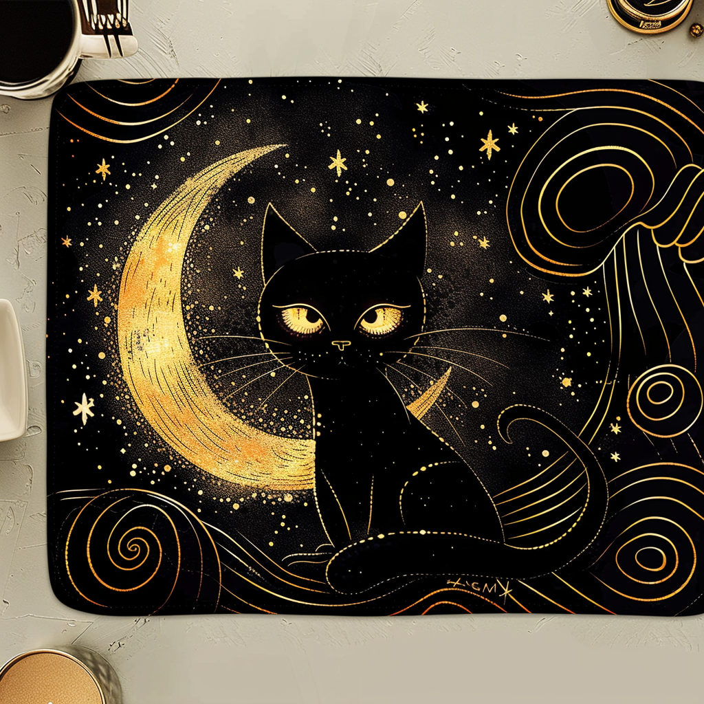 Moonlit Cat's Serenade Quilted Place Mat NCU0TH403